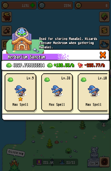 A facility used for storing and displaying various herbs. It typically features advanced temperature and humidity control systems, along with special magical barriers for categorizing and protecting rare herbs. Wizards working here can produce Mana Gel, which requires the consumption of Mushrooms.<br>